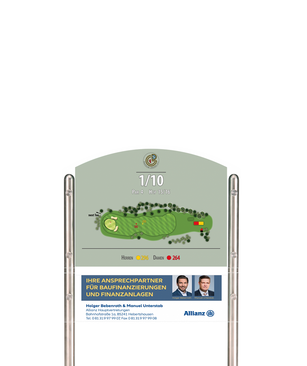 Unsere Abschlagtafeln sorgen für maximale Orientierung und ein ansprechendes Erscheinungsbild auf jedem Golfplatz. Alle Modelle werden aus hochwertigen, UV- und witterungsbeständigen Materialien gefertigt und in präziser Handarbeit verarbeitet. Auf Wunsch können die Darstellungen in 2D oder 3D visualisiert werden, um die Ausstrahlung und Informationskraft zusätzlich zu verstärken. Ausgesuchte Materialien in Kombination mit sorgfältigen Verarbeitungstechniken gewährleisten Langlebigkeit und bleibende Qualität.